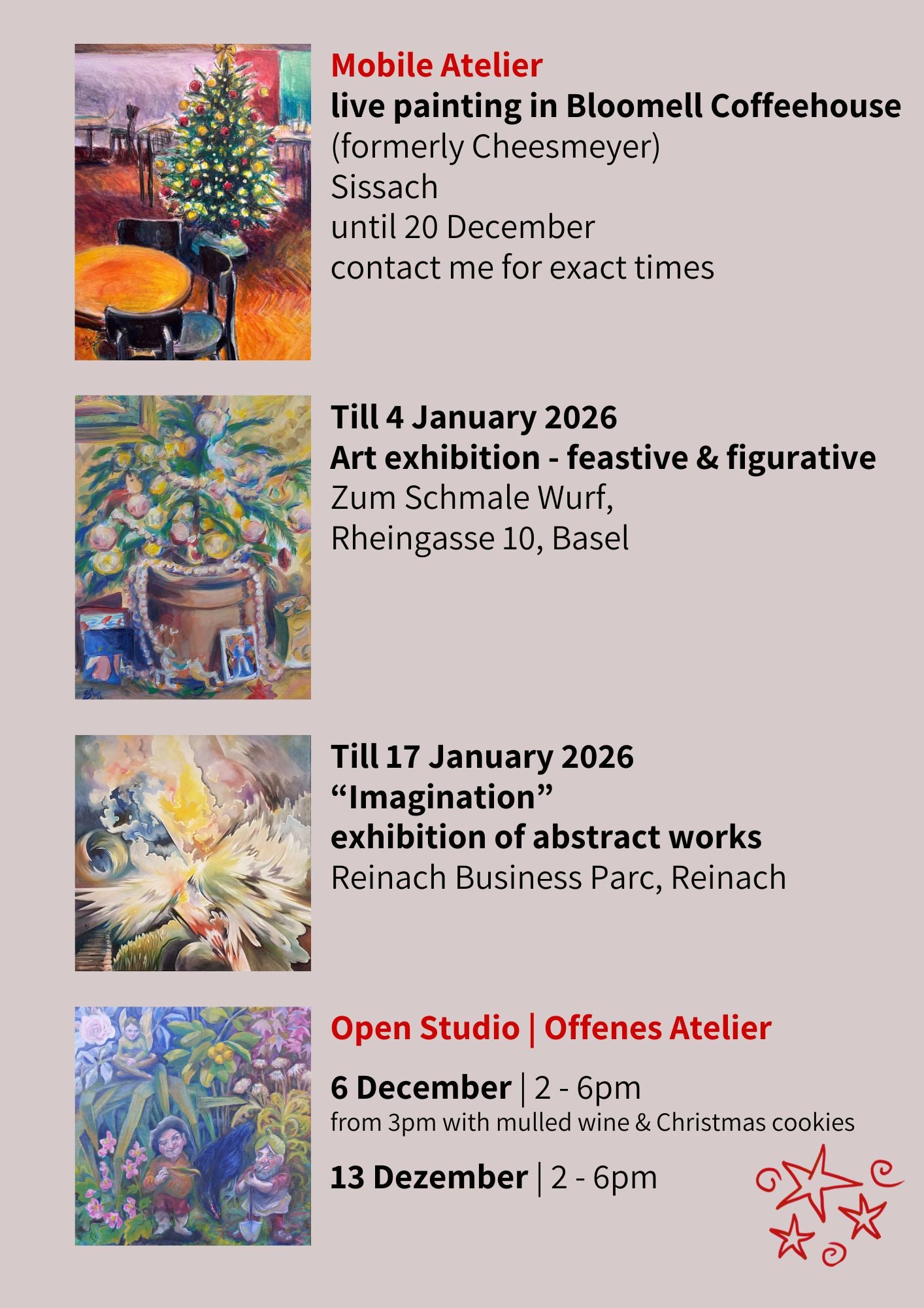 Open Studio Sat 2-6pm 22 Nov, 6 & 13 Dec 2025